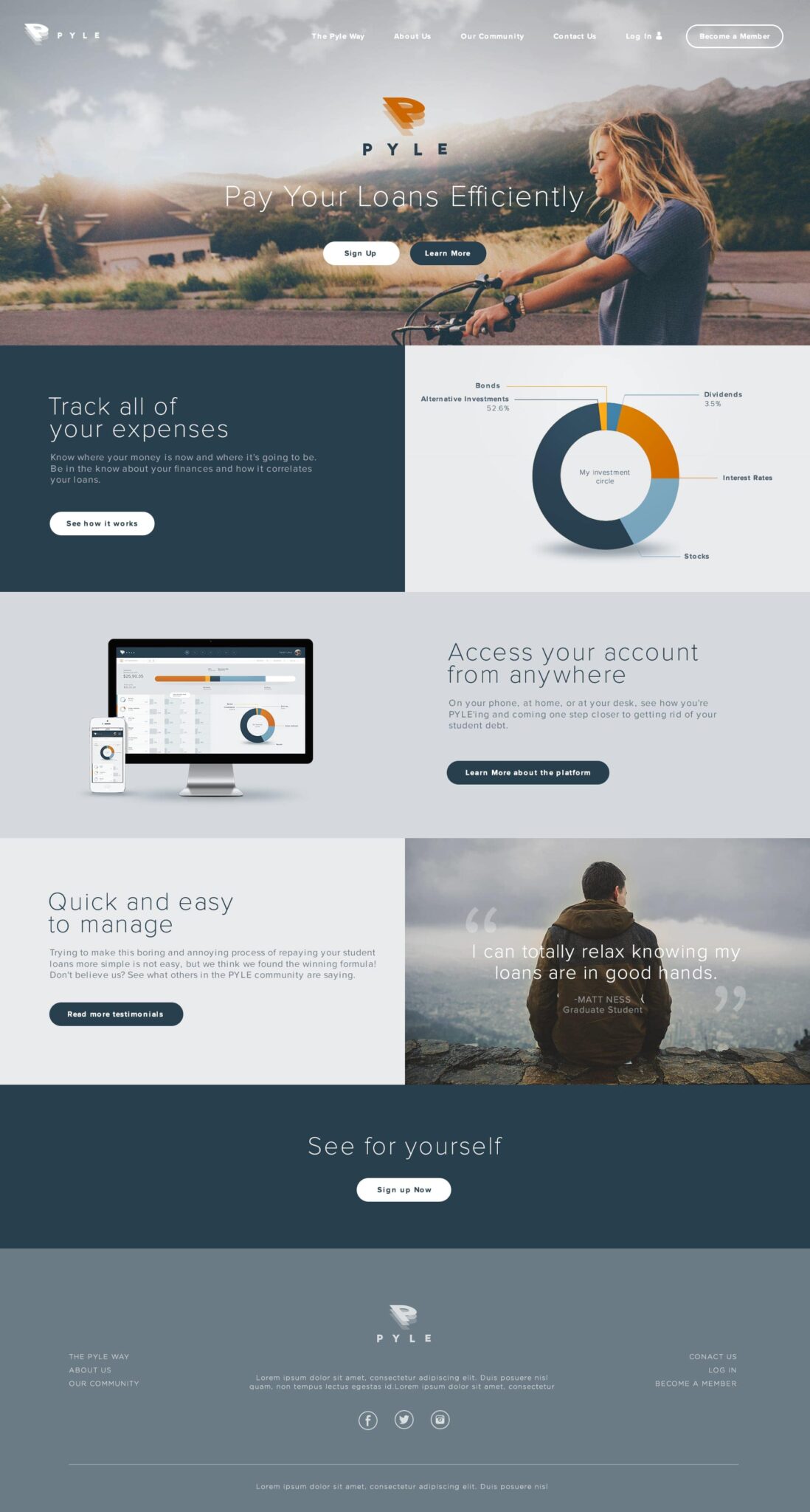 Pyle is a platform designed with young professionals at mind. Pyle teaches them how to invest, save and manage their money effectively. The startups goal was to help young professionals payoff their student loans and become financially dependent.