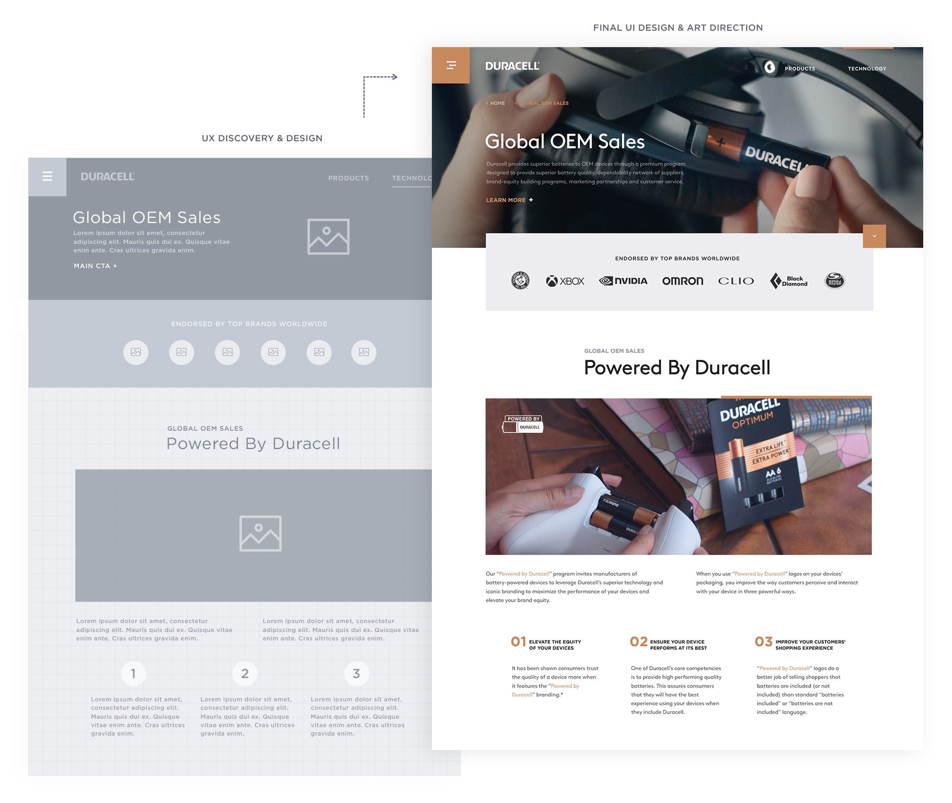 Each page of the new duracell.com was meticulously designed to drive home the importance of having a reliable battery in your everyday devices. With the brand story baked throughout the pages, all signs pointed to product pages and "buy now" conversions.